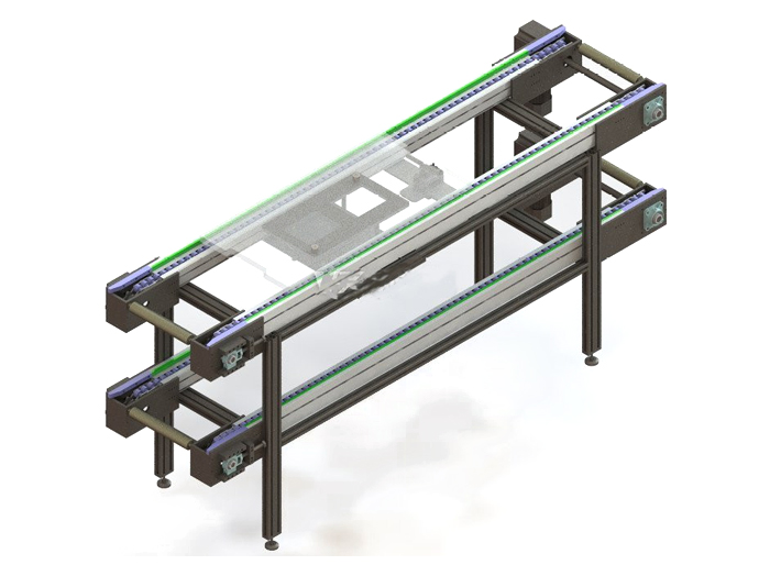 • 4、易於實現(xiàn)積放輸送,可用做裝配生產線或作(zuò)為物(wù)料的儲存輸送;